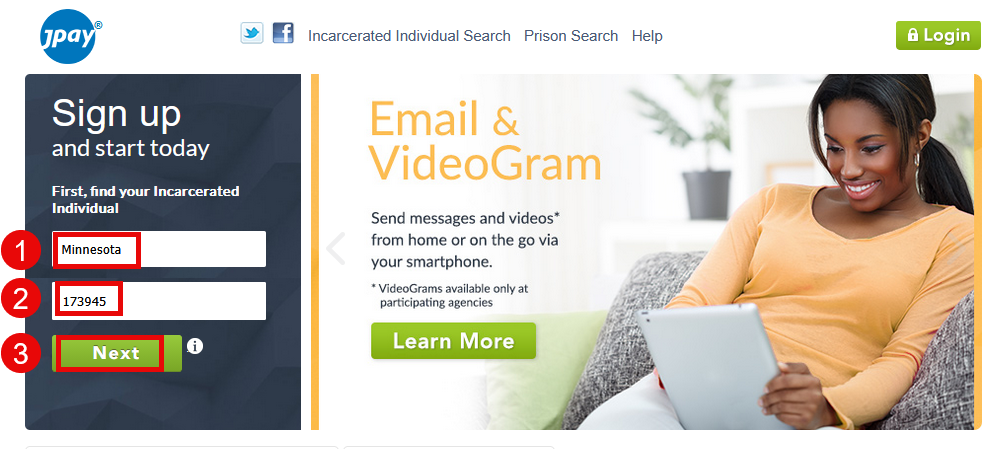 If using a computer or you want to try without the App go to: https://jpay.com